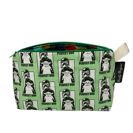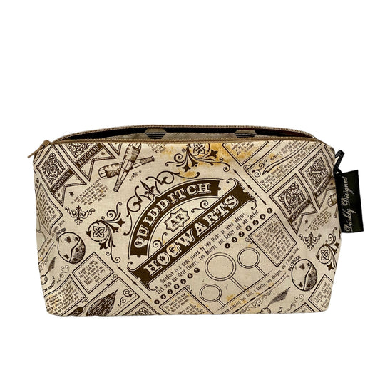 Zippered standing wedge bag for your cosmetics, toiletries, yarn, pencils or whatever else you need to keep neat and tidy and standing upright.