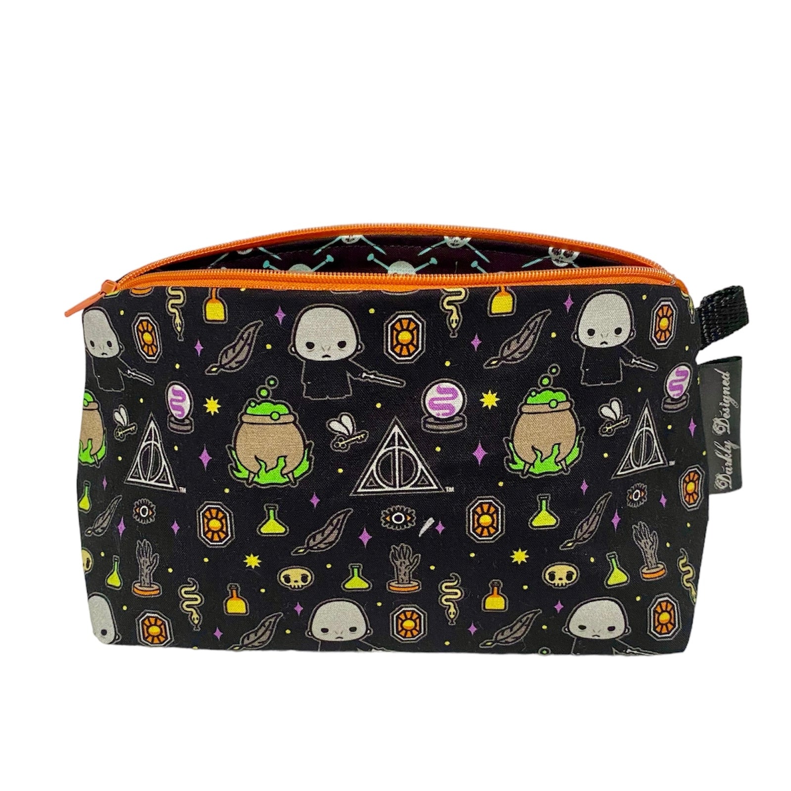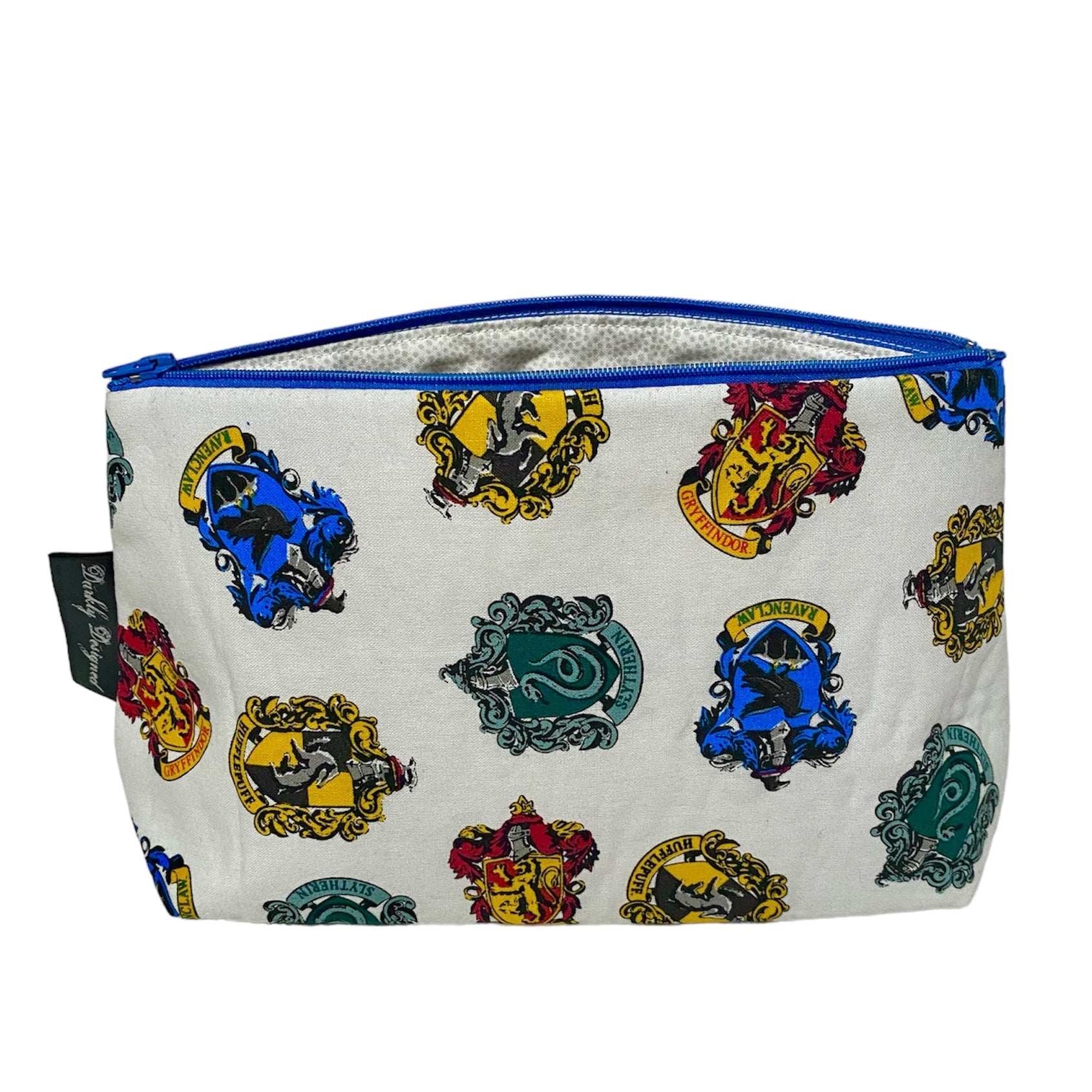 Carry your cosmetics, toiletries, yarn, pencils, and more in this stylish and practical wedge bag! Its lightly-structured shell is made of your favorite cotton print, with a cotton lining, box corners for stability, and a zippered top closure.