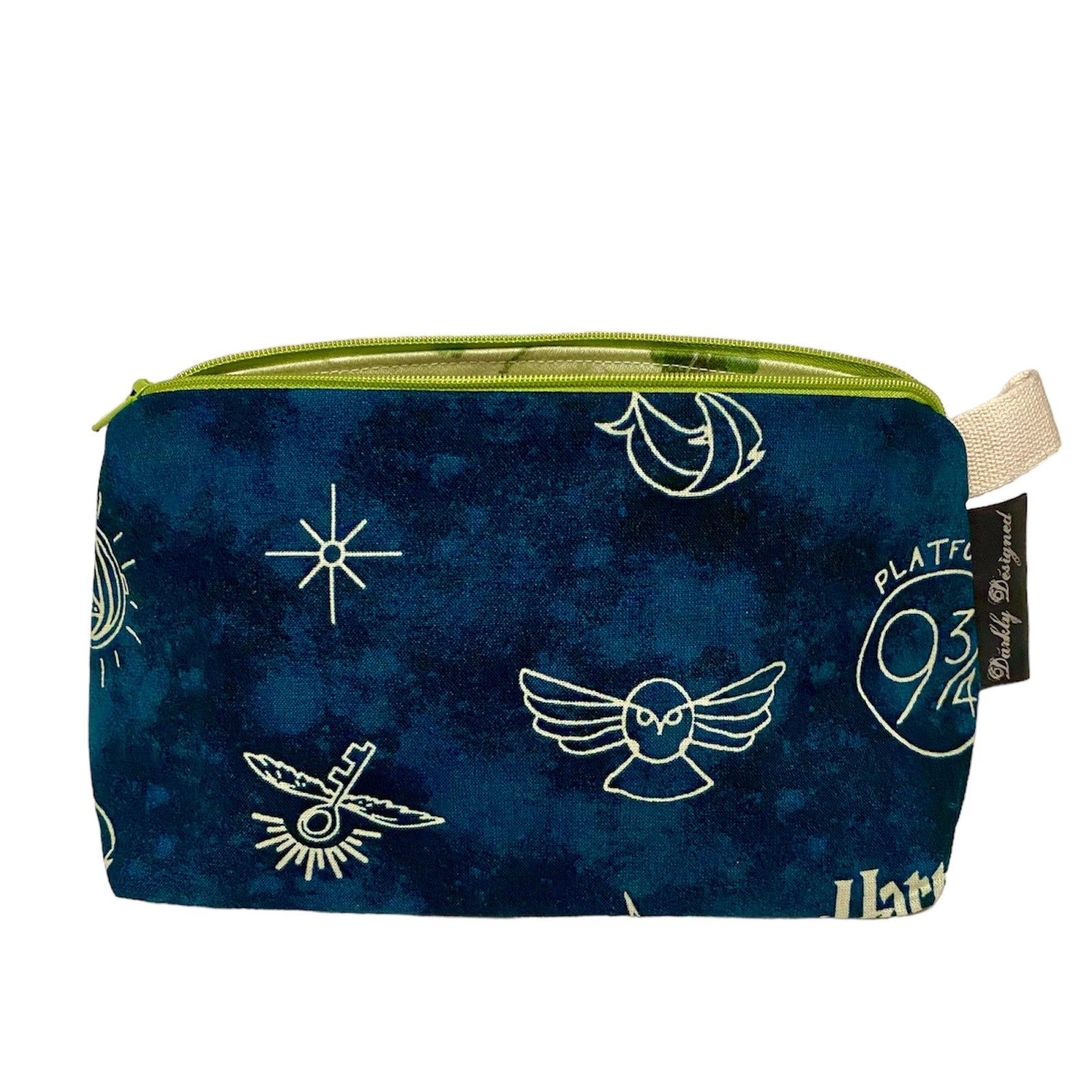 The bags average measurements are 9” long x 3.5” wide and 5” tall, and conveniently folds flat when not in use (perfect for packing!). Machine washable, hang to dry.