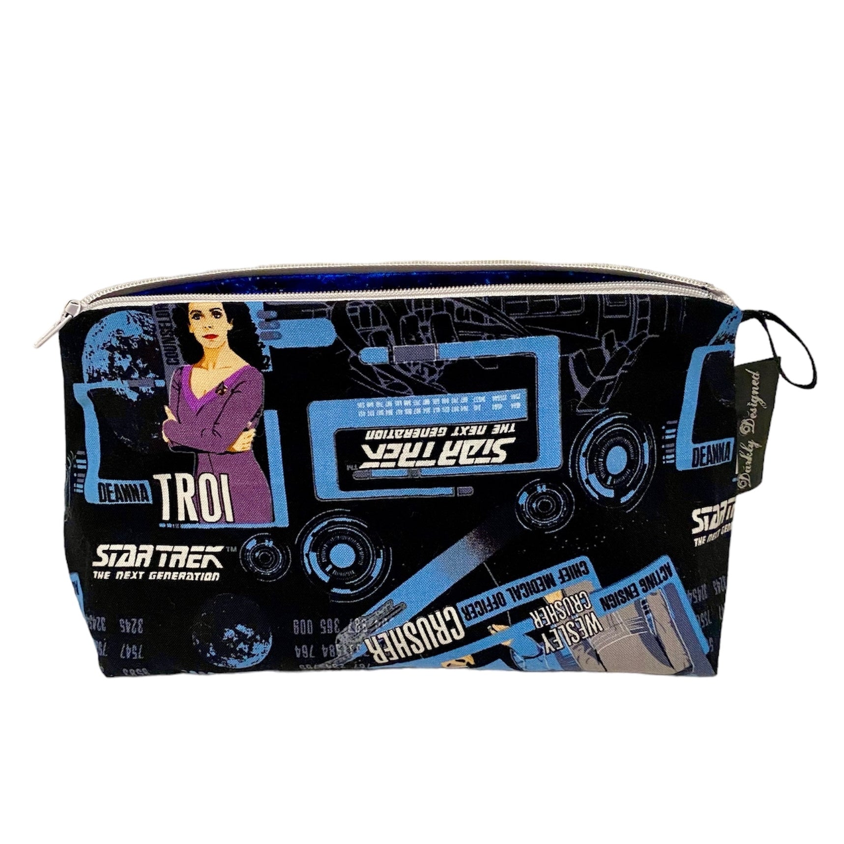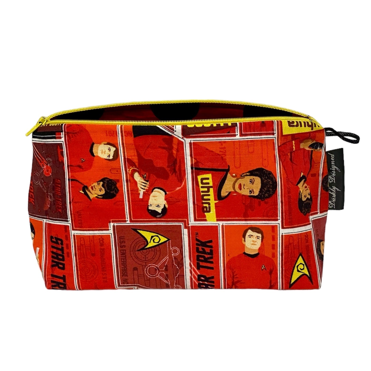 Carry your cosmetics, toiletries, yarn, pencils, and more in this stylish and practical wedge bag! Its lightly-structured shell is made of your favorite cotton print, with a cotton lining, box corners for stability, and a zippered top closure.