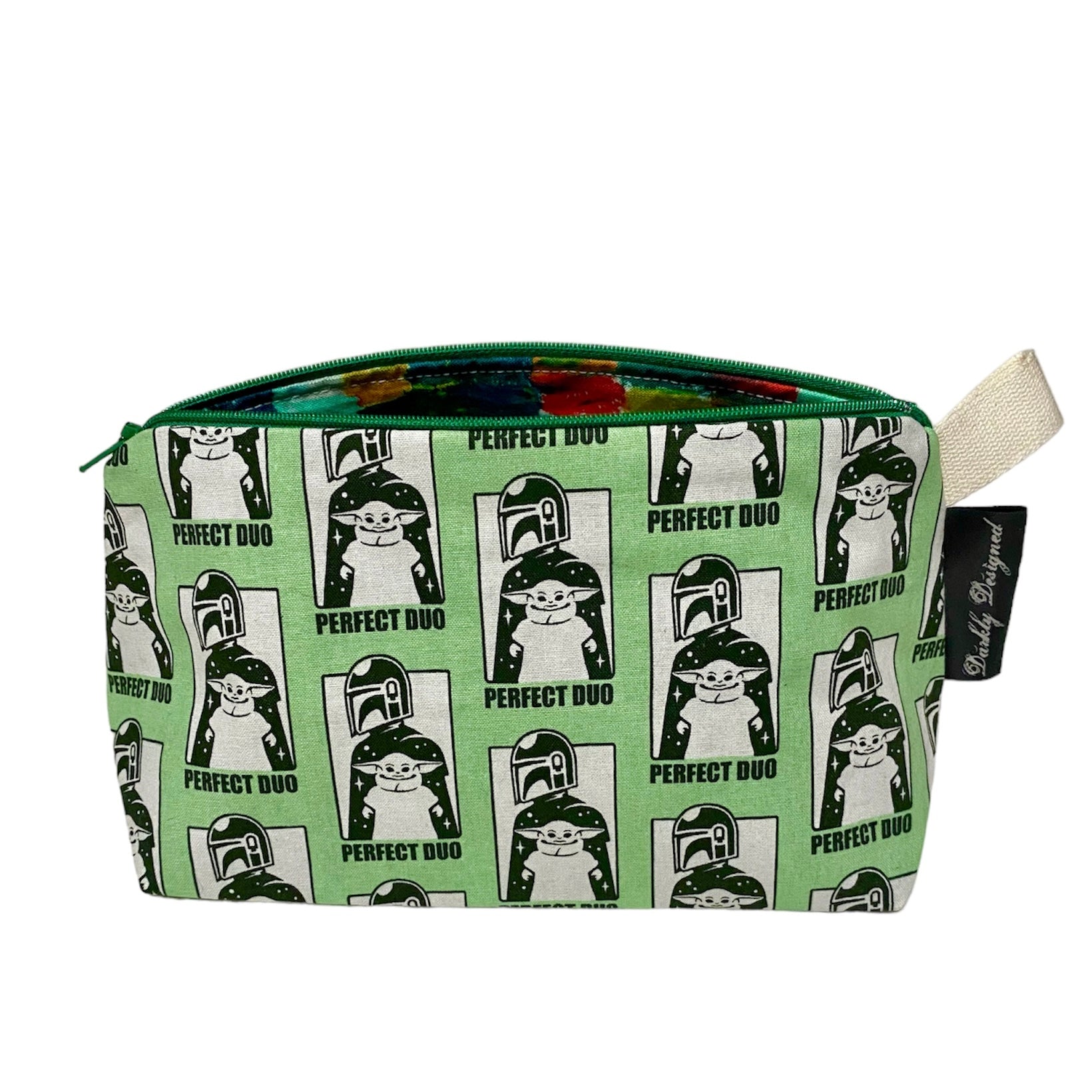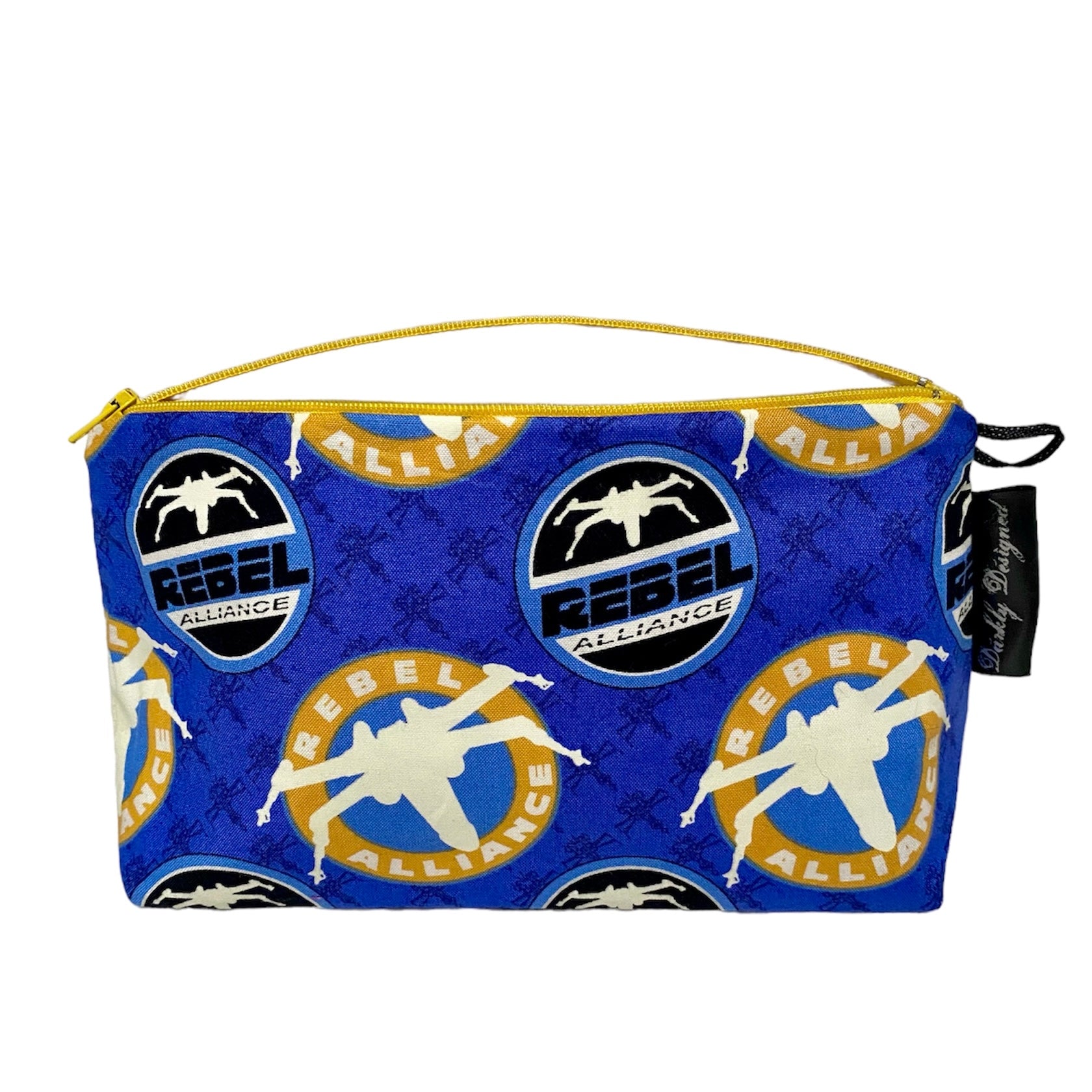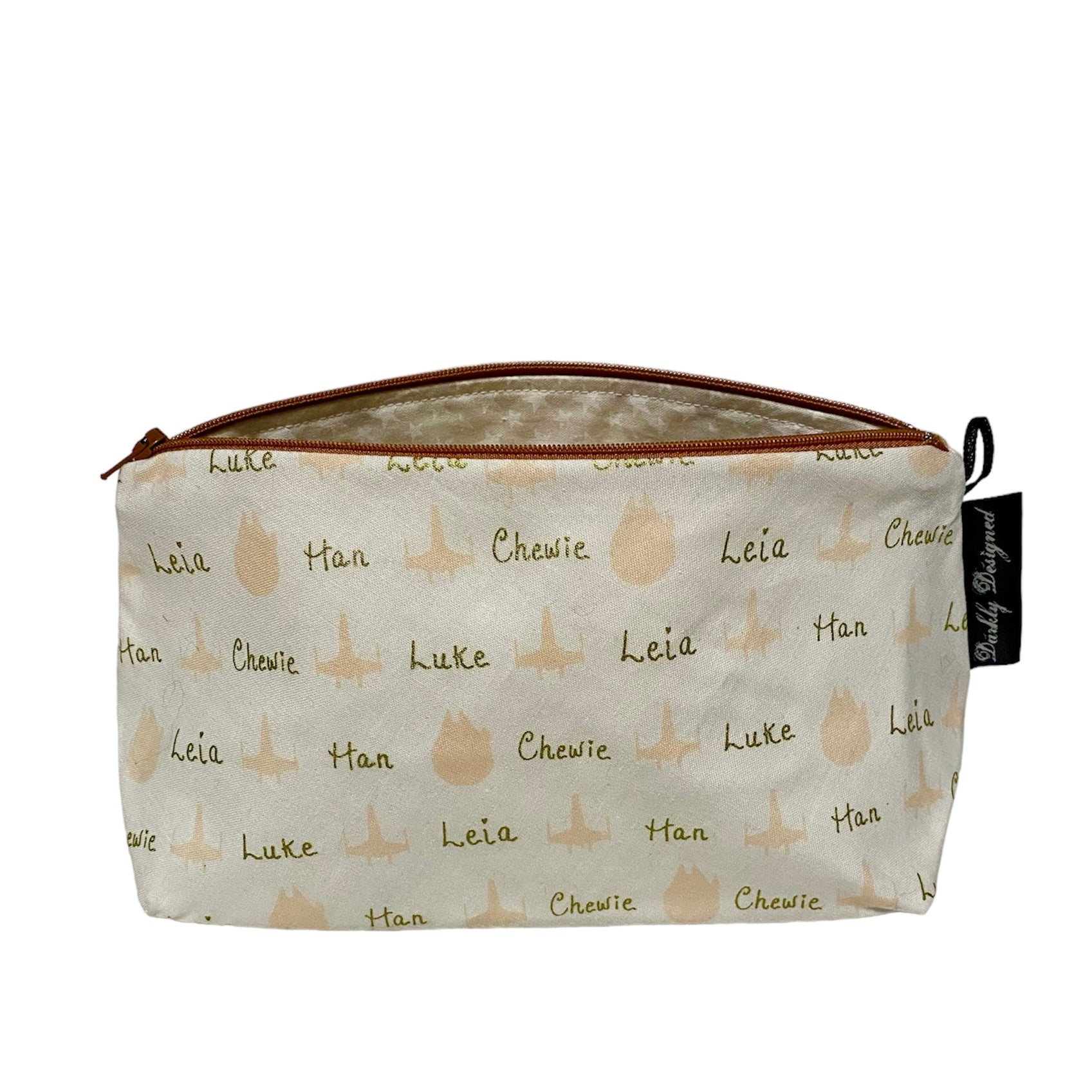 Carry your cosmetics, toiletries, yarn, pencils, and more in this stylish and practical wedge bag! Its lightly-structured shell is made of your favorite cotton print, with a cotton lining, box corners for stability, and a zippered top closure.