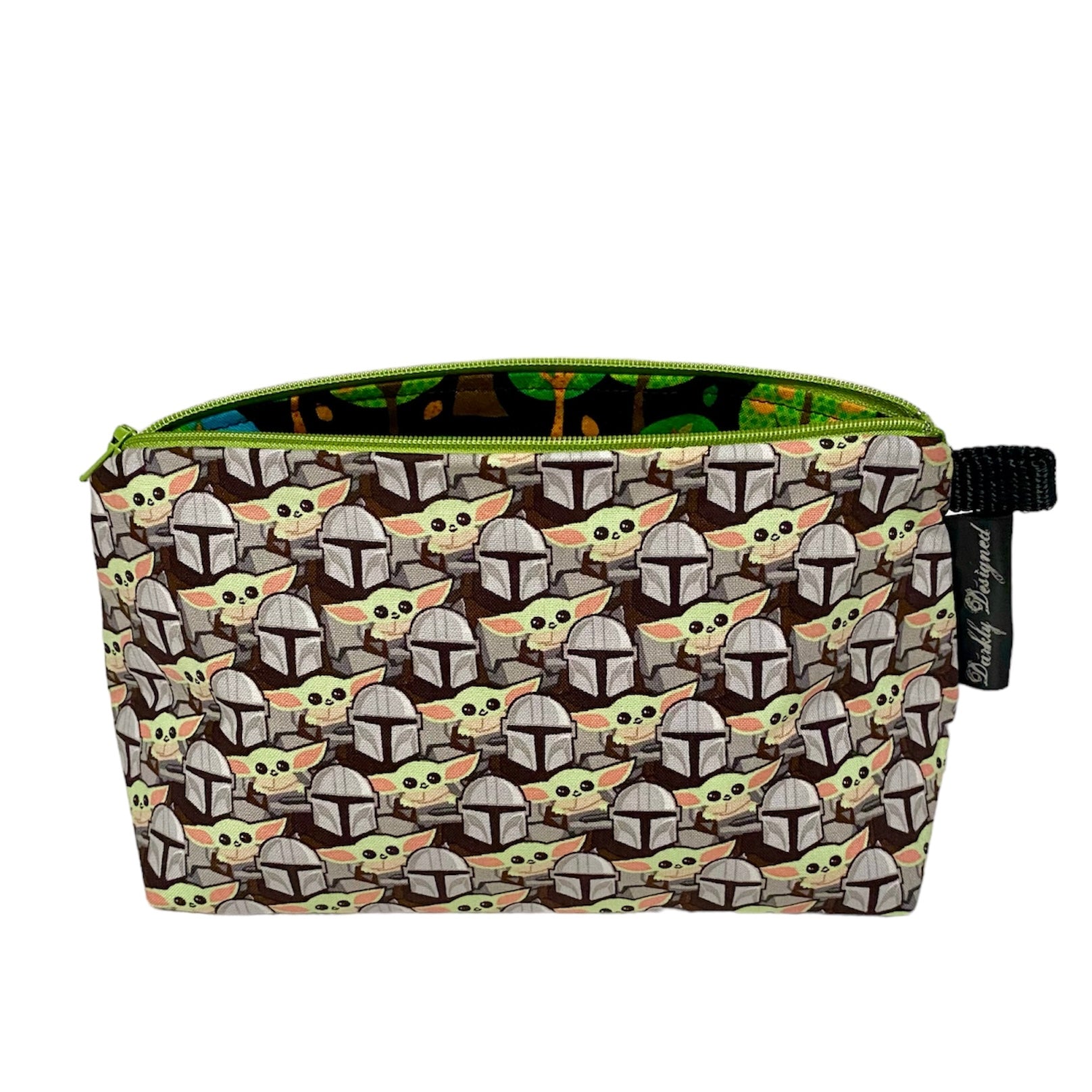 The bags average measurements are 9” long x 3.5” wide and 5” tall, and conveniently folds flat when not in use (perfect for packing!). Machine washable, hang to dry.